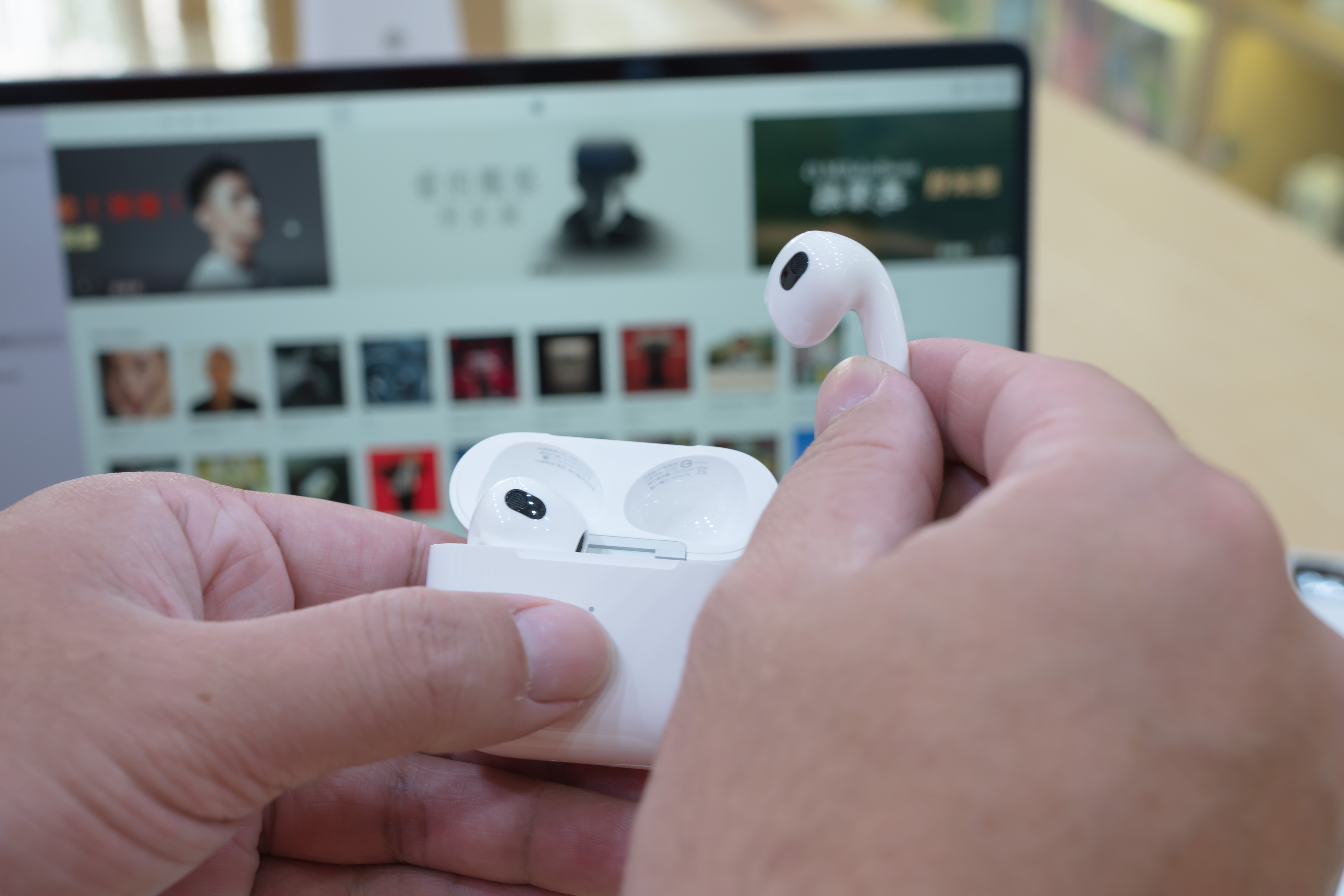 全新 AirPods 登場。具備空間音訊,讓聲音環繞在你身邊;「適應性等化」功能,根據你的耳形調整音樂;擁有更長的電池續航力;還不怕汗,不怕雨。這一切,帶來的感覺就是,巧妙。