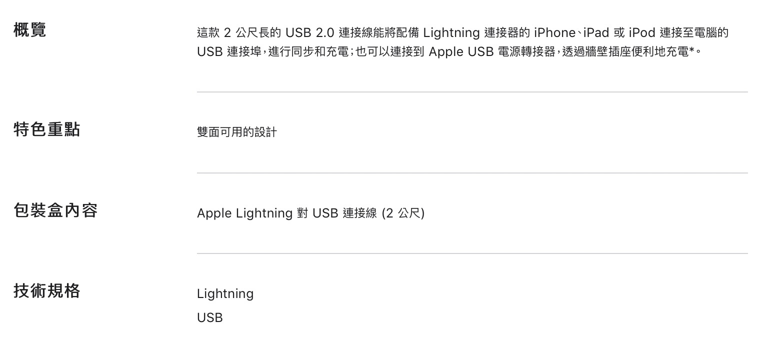 Lightning 對 USB 連接線 (2 公尺) (MD819FE/A)