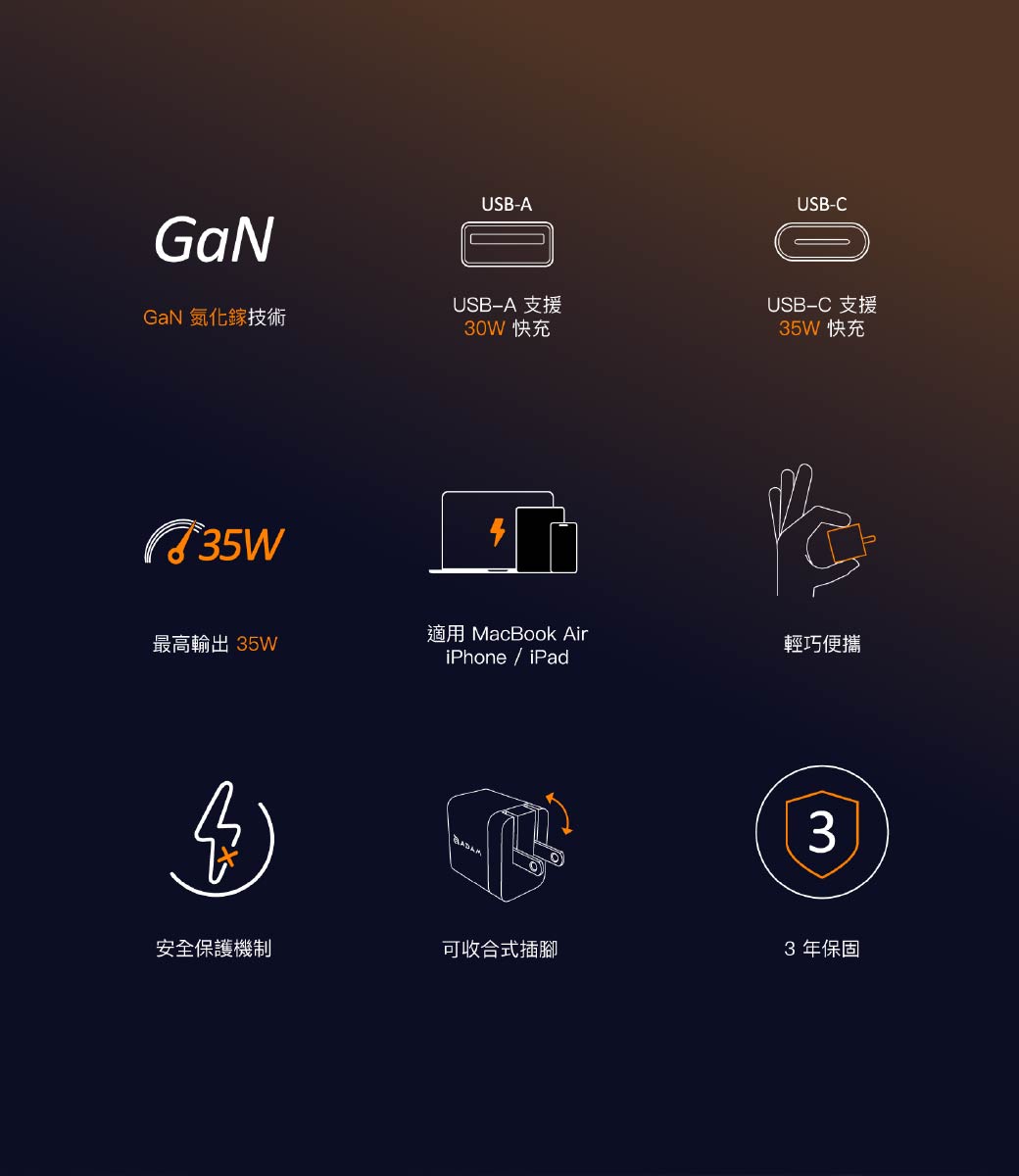 OMNIA X35A GaN 35W雙孔迷你快速電源供應器