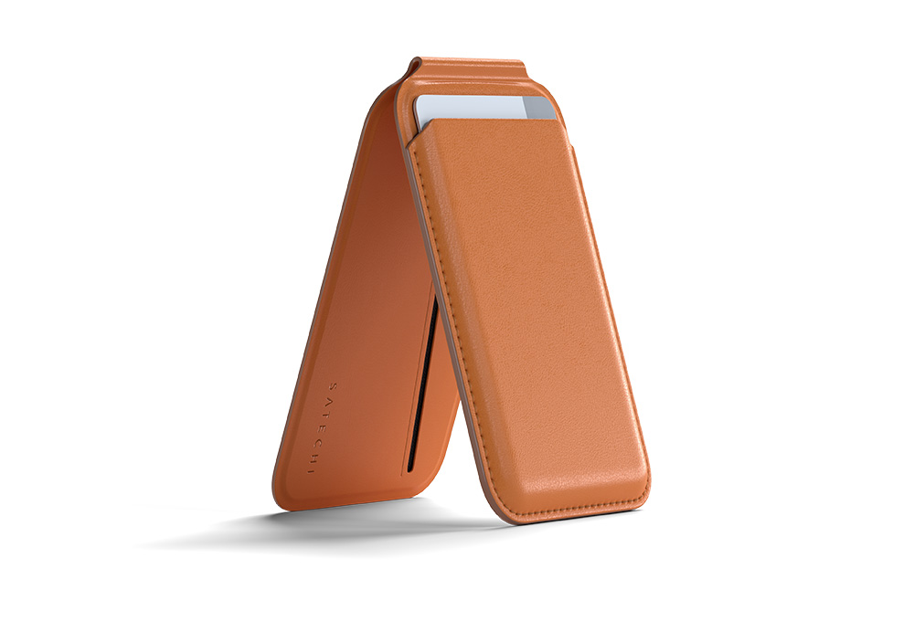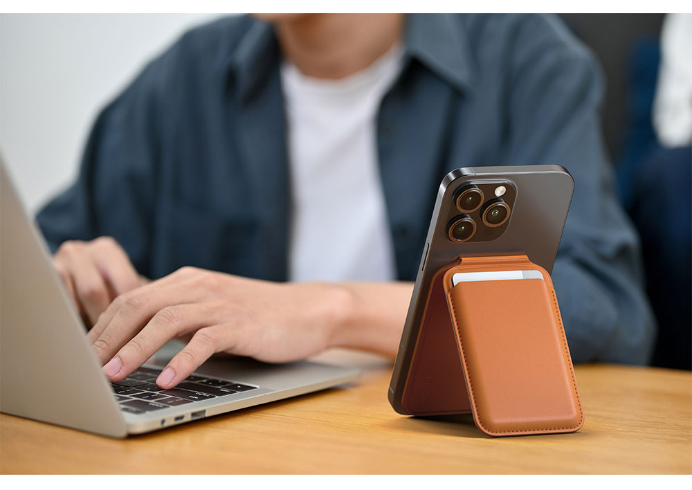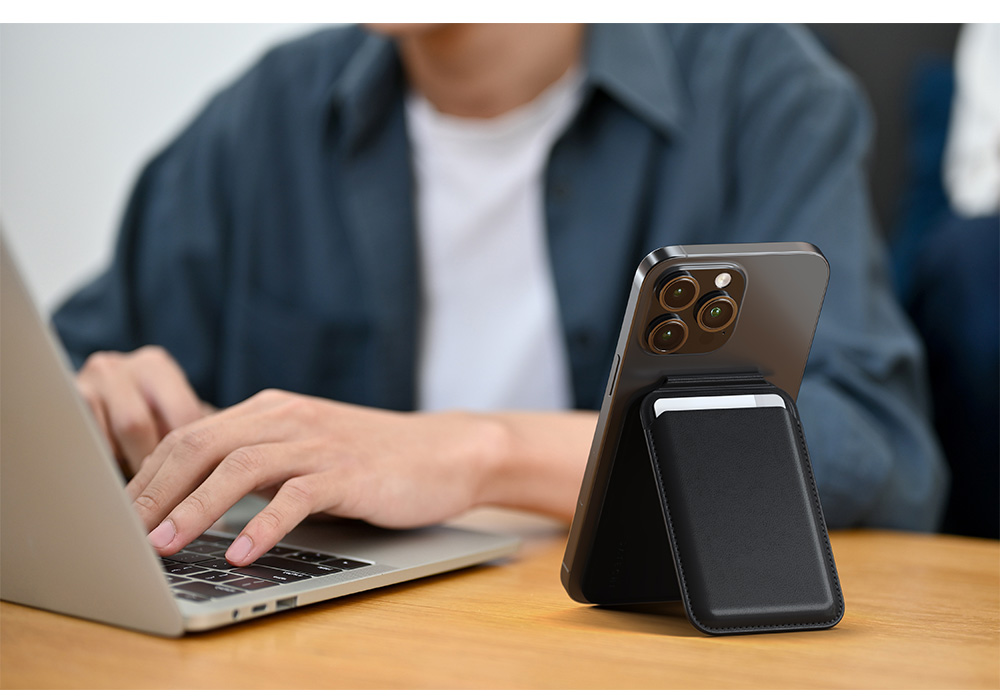 Satechi 磁吸式卡套立架結合時尚設計與實用功能,兼顧環境友善理念。以 MagSafe 技術支援,可輕鬆貼合 iPhone,不僅方便攜帶卡片、身分證或現金,更能隨時變身 iPhone 的堅固立架,橫向或直向模式輕鬆切換,讓你無論瀏覽網頁、追劇還是進行 FaceTime 通話都更加便利。