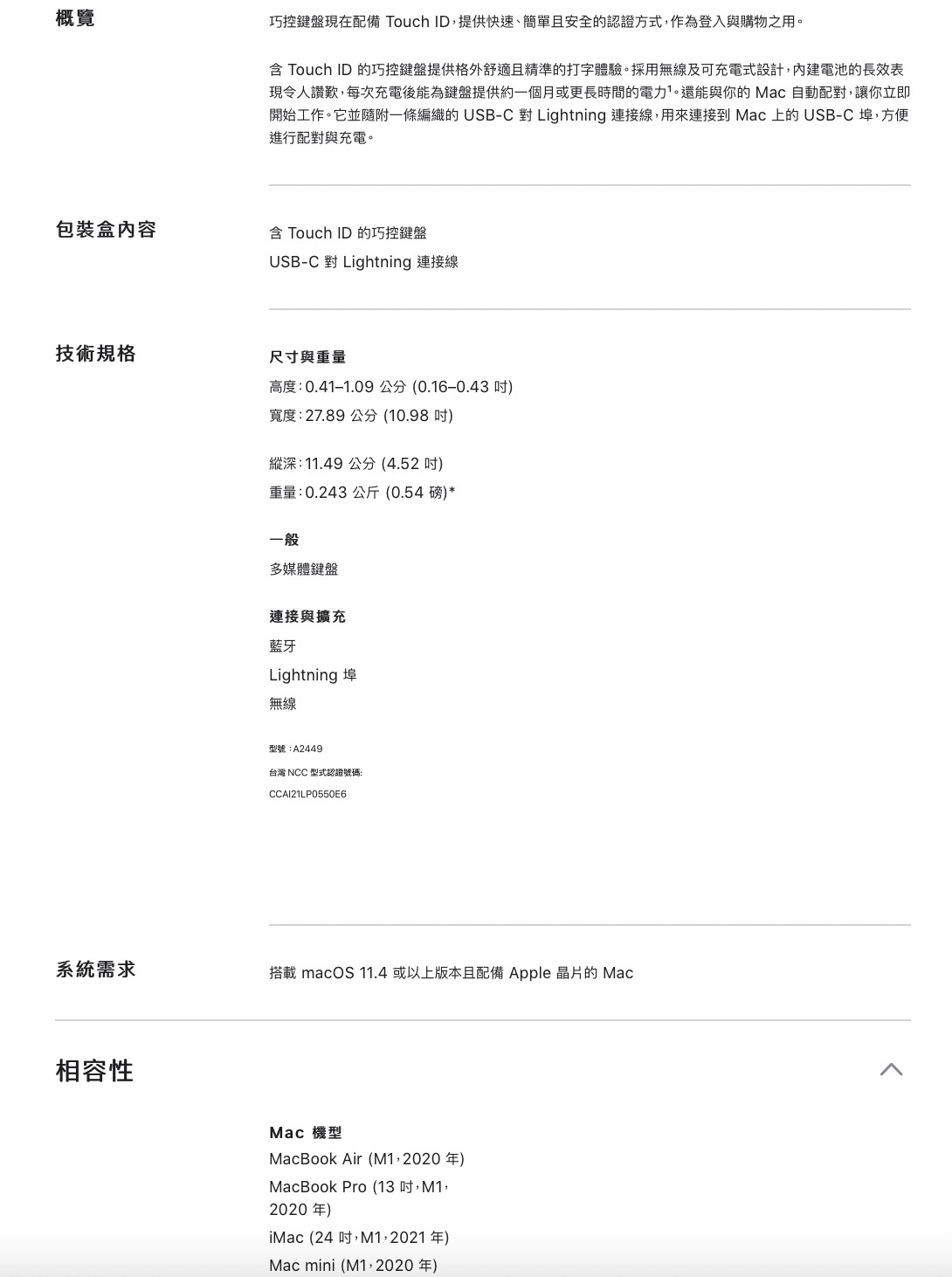 含 Touch ID 的巧控鍵盤,適用於配備 Apple 晶片的 Mac - 中文 (注音)