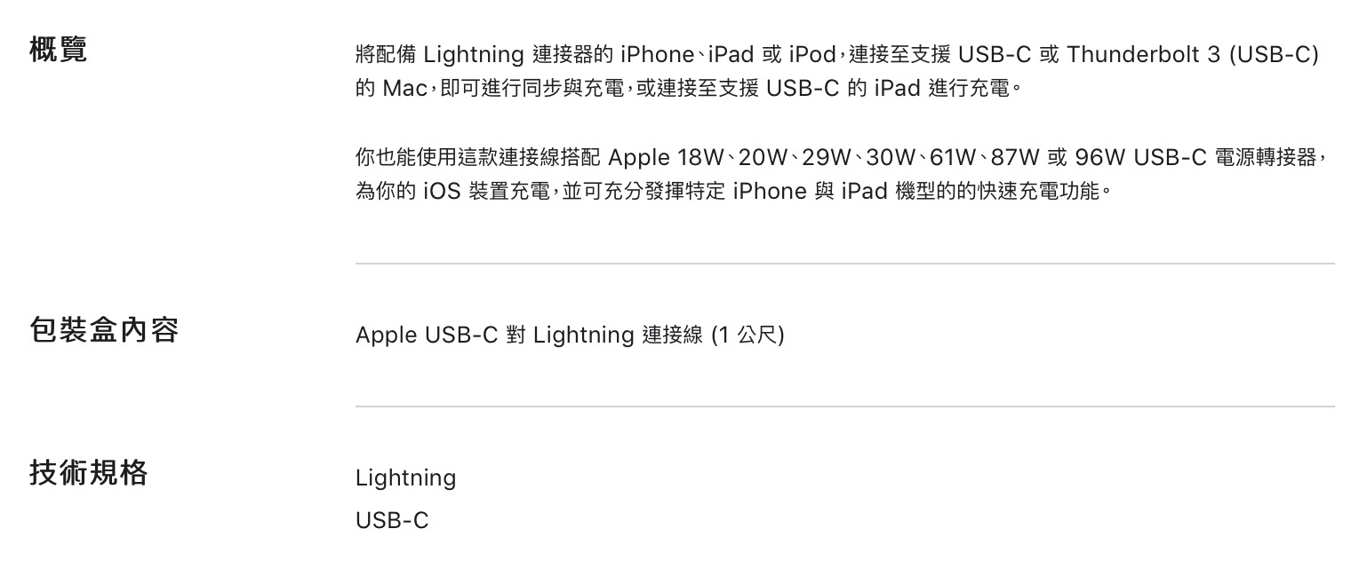 [雙北2小時快送] USB-C 對 Lightning 連接線 (1 公尺) (MUQ93FE/A)